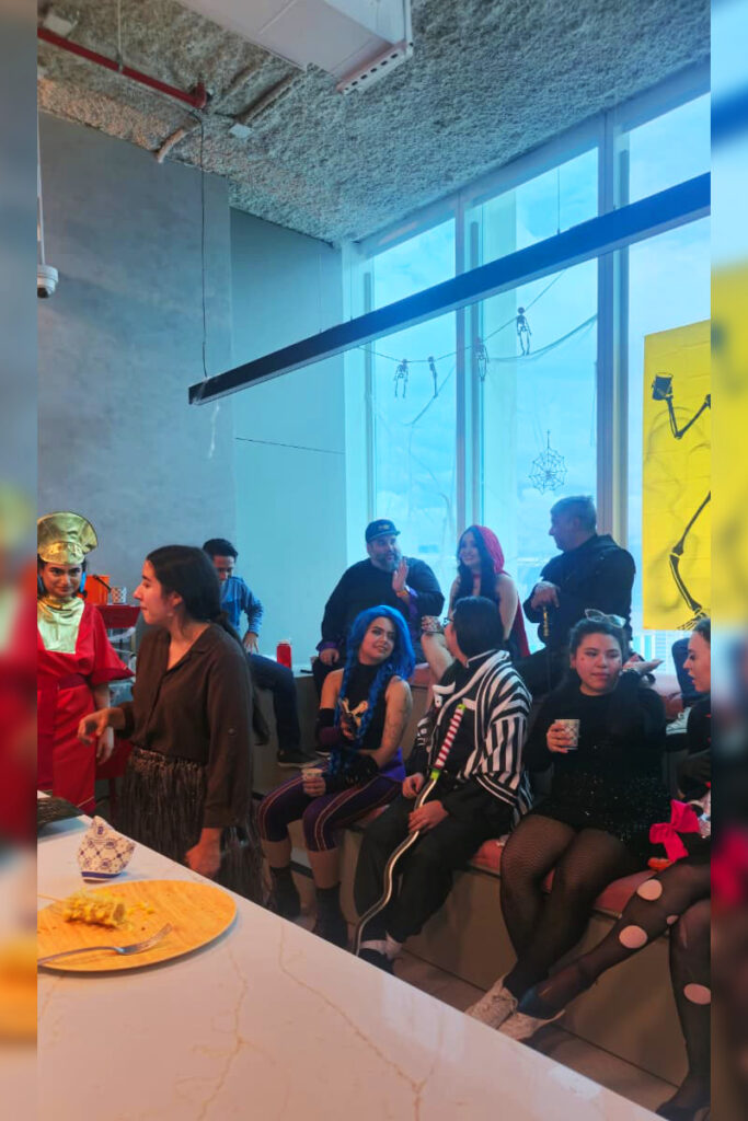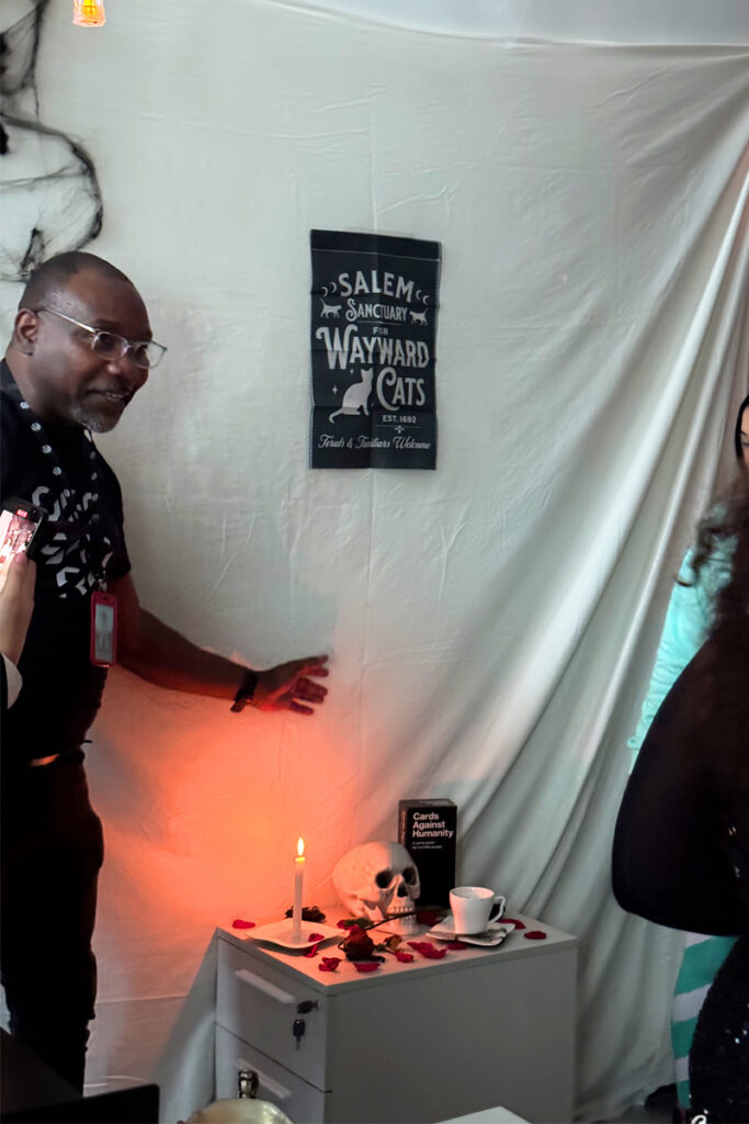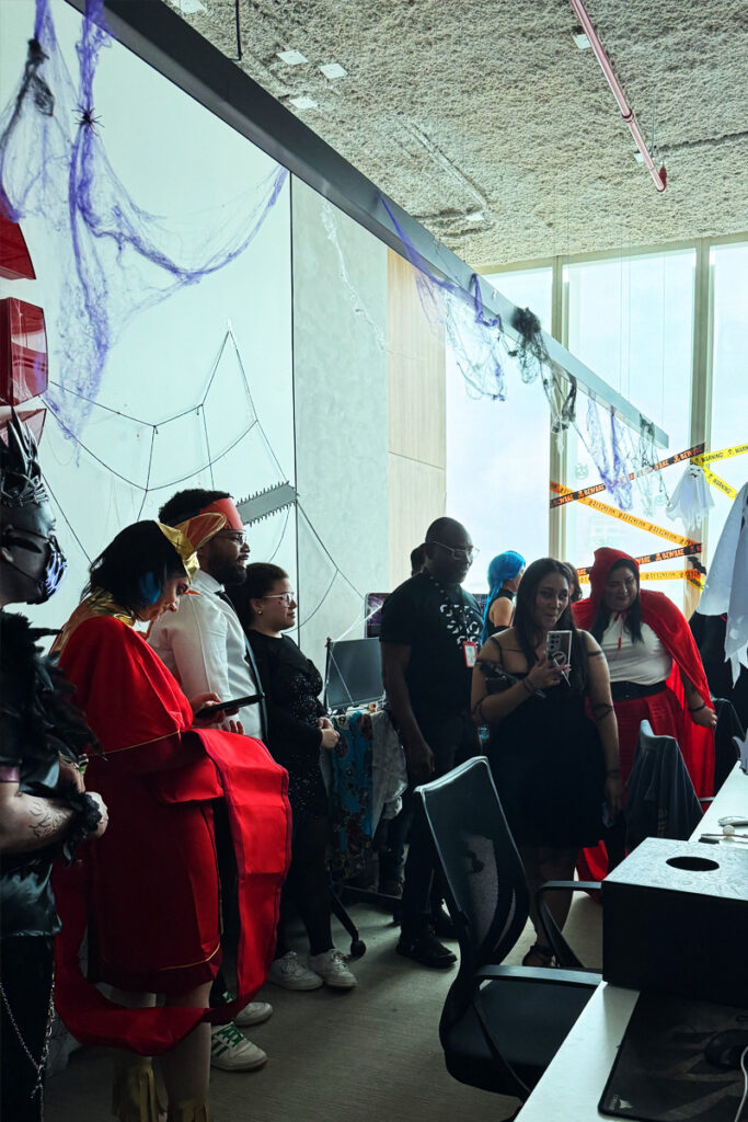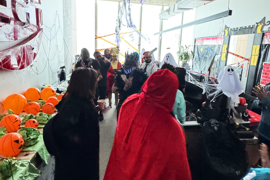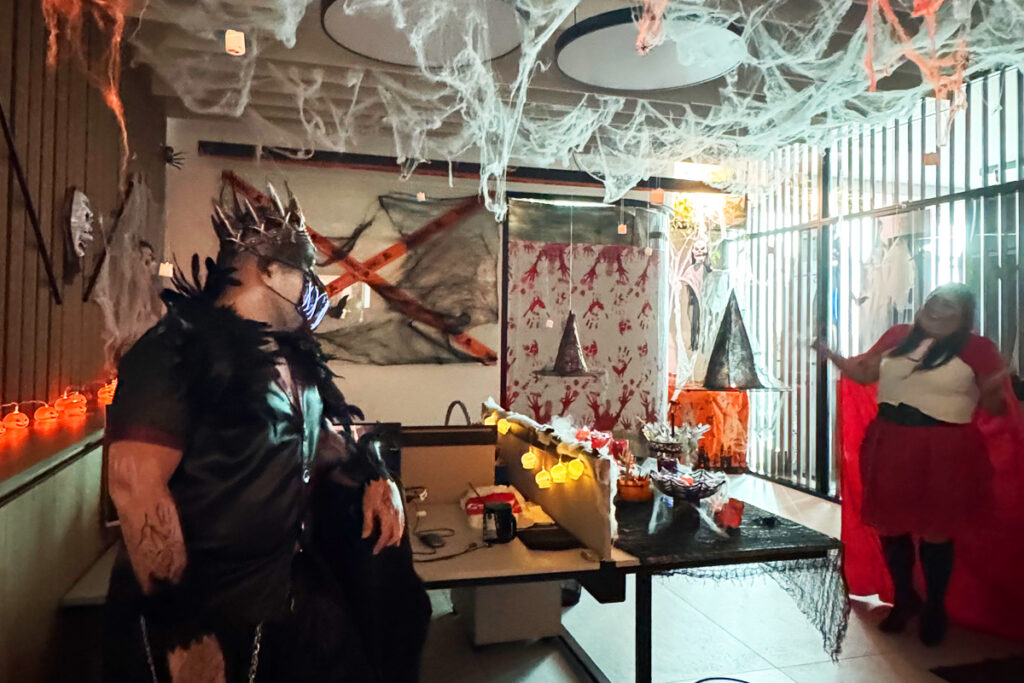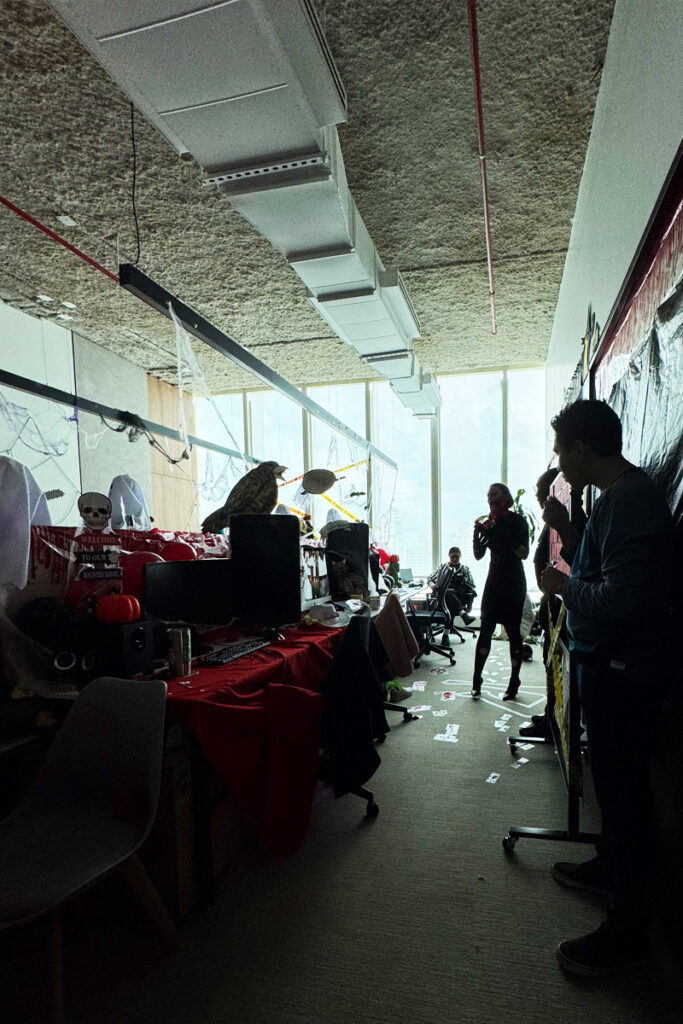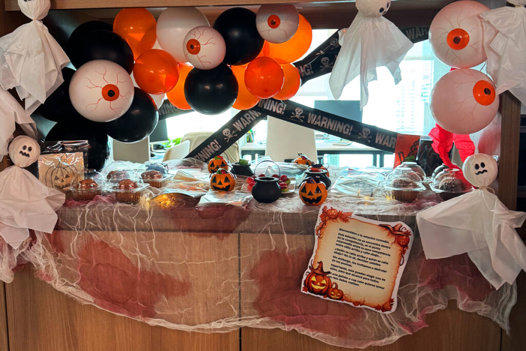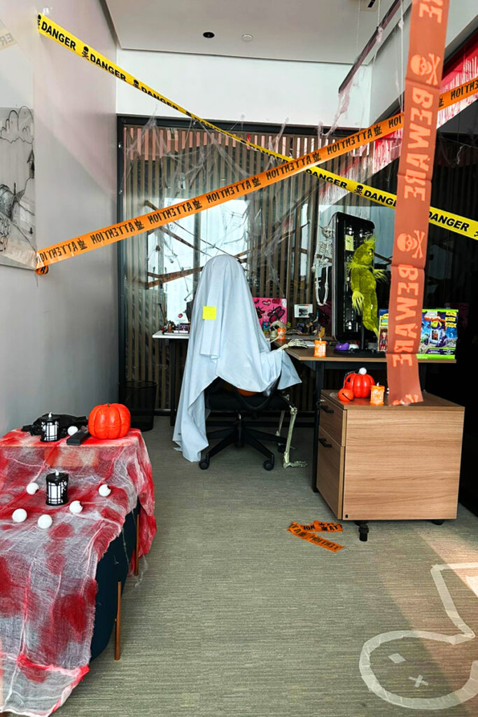 La oficina se dividió en diferentes áreas; cada equipo tenía que utilizar su creatividad y recursos para decorar a lo largo de las semanas que antecedían a Halloween.