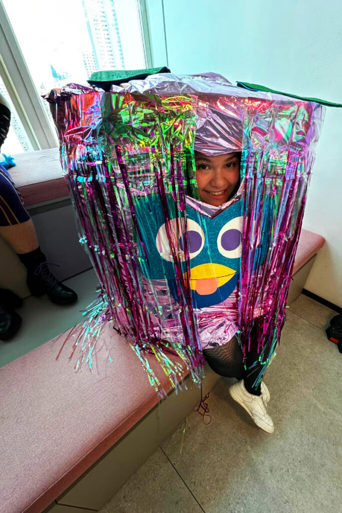 Oriel con su creativo disfraz