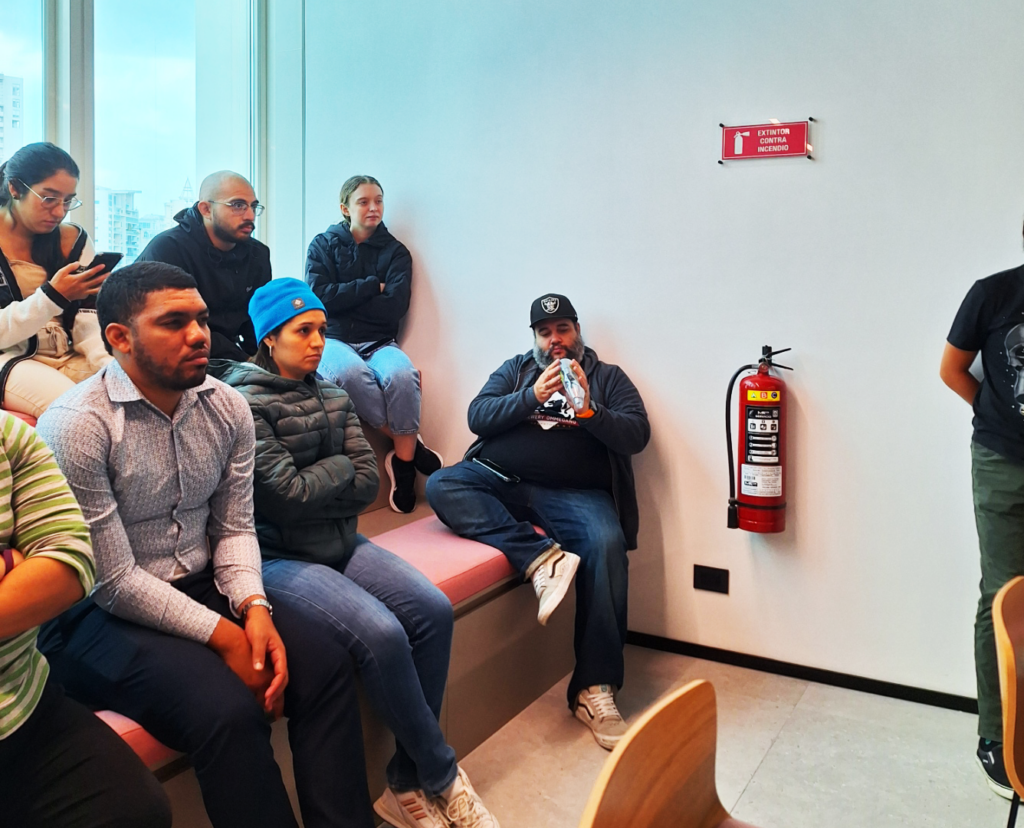 Nos reunimos en la cocina donde el expositor mostró una presentación en pantalla sobre cómo reciclar adecuadamente, seguido por una sesión de preguntas y respuestas.