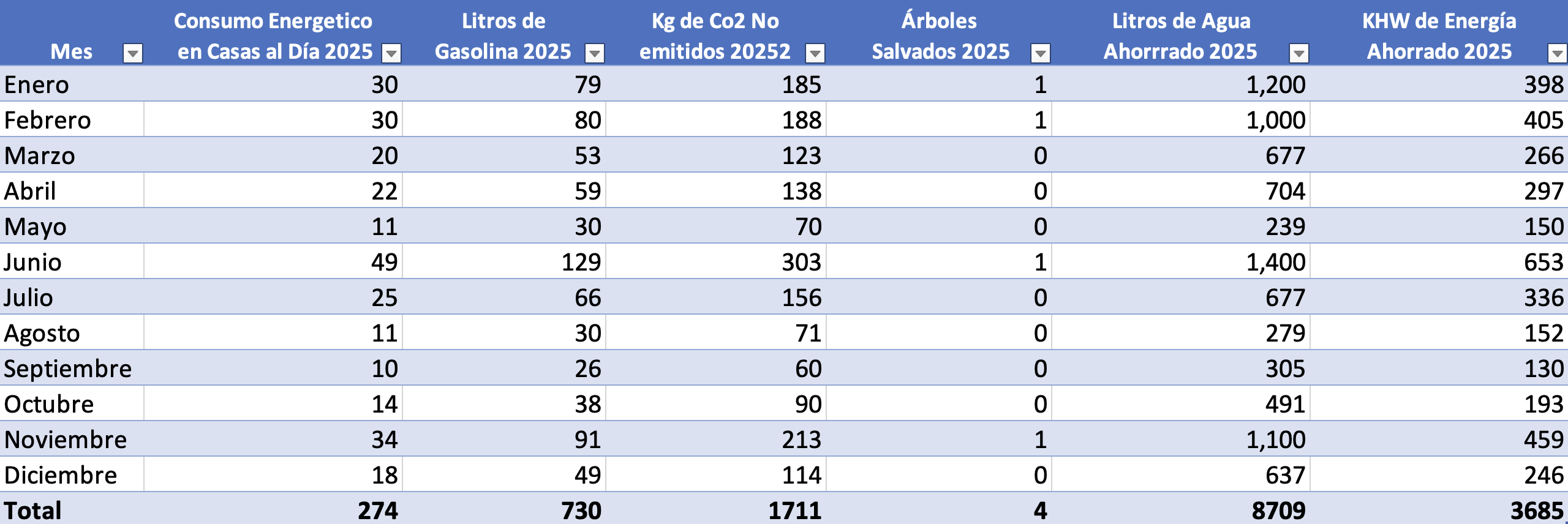 Tabla Global de Ahorro de Recursos 2025
