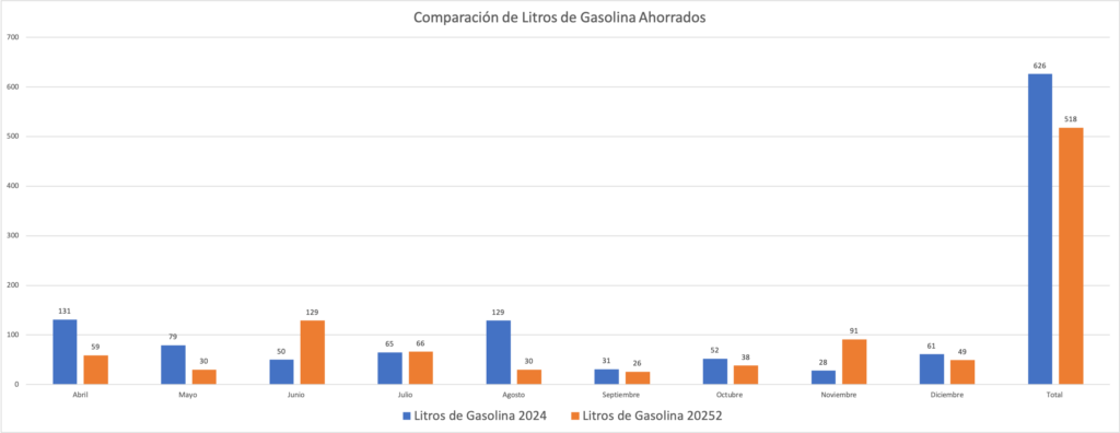 Comparación de Litros de Gasolina Ahorrados 2024 vs. 2025