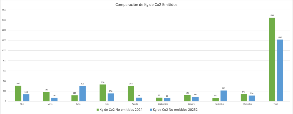 Comparación de Kg de Co2 Emitidos 2024 vs. 2025