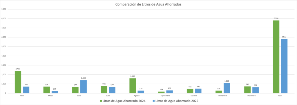 Comparación de Litros de Agua Ahorrados 2024 vs. 2025