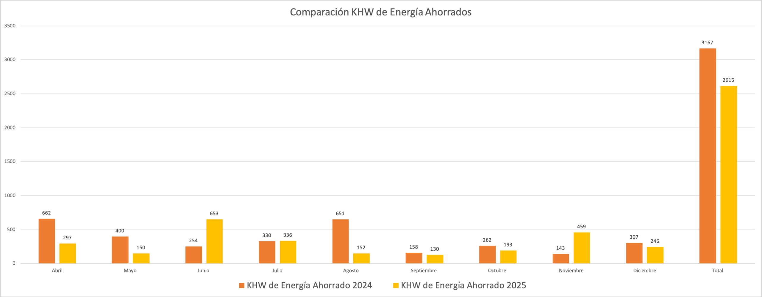 Comparación de KHW de Energía 2024 vs. 2025