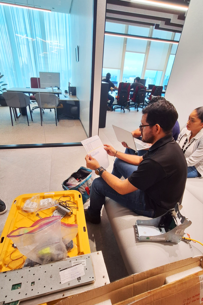 -Técnicos (Emilio Gonzáles, Luis de Gracia, Paul Reyes y Oliver Cáceres) que brindan apoyo, ayudan a reconocer las piezas que se tienen en inventario, confirman los números de serie de los materiales que los tengan, ayudan a contar las piezas, entre otros. Además de eso, apoyan en el embalaje y el etiquetado de los pallets (Plataforma de tablas para almacenar y transportar mercancías) ya contados.