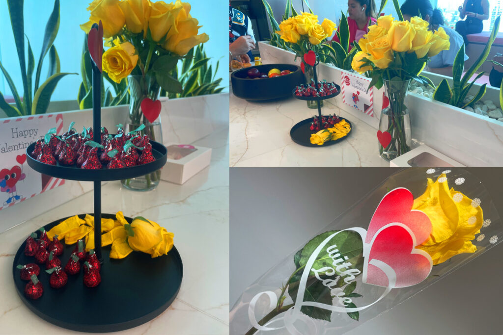 ¡También había un adorable arreglo para el día del amor y de la amistad en la cocina de donde podíamos tomar más chocolates!
