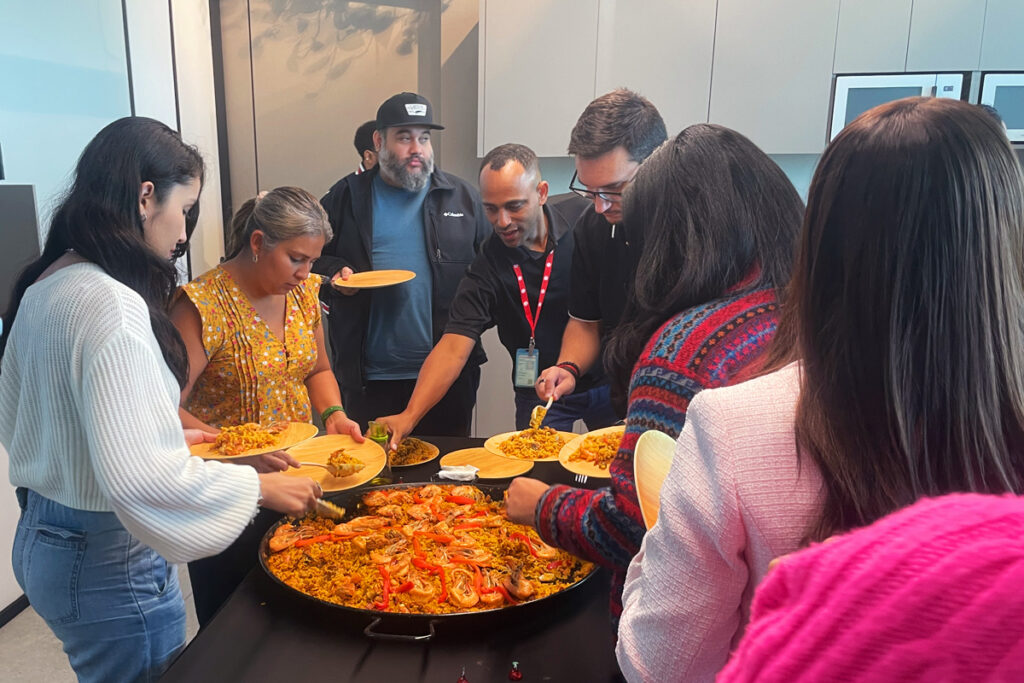 En el esperado almuerzo, todos nos reunimos para comer una sabrosa paella. En el medio de la cocina, en una olla gigante, estaba el delicioso y vibrante plato español. Rodeamos la cazuela y, sin demora, nos servimos arroz con mariscos en nuestros platos.